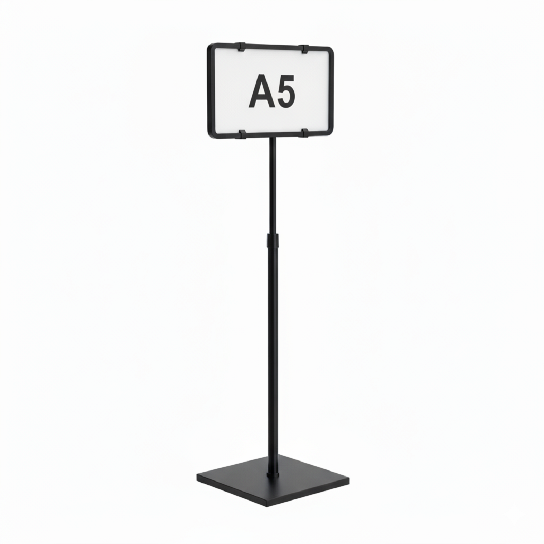 Adjustable Telescopic Stem: Allows height adjustment up to **650mm**, ensuring your A5 signage is always positioned at the optimal viewing height above stock.