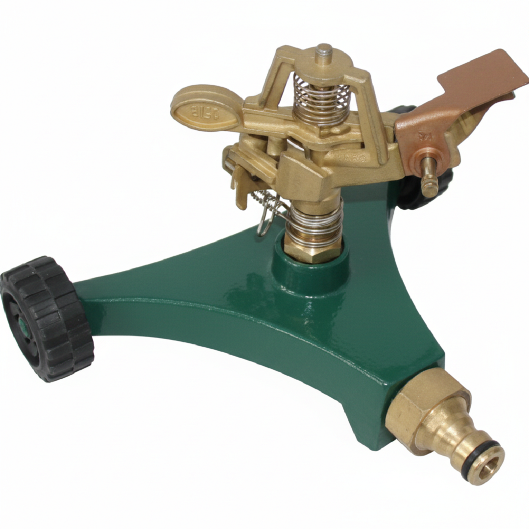 The **AFIA Metal Pulsating Sprinkler** is a professional-grade irrigation solution built to handle large areas with unmatched durability and control. The unit is mounted on a **heavy-duty metal wagon base with wheels**, ensuring superior stability and easy mobility across lawns and fields. Featuring a powerful metal pulsing head, this sprinkler offers precise control with both **full circle (360°) and part circle** pattern settings, allowing you to easily target specific zones while protecting adjacent areas from overspray. The robust construction and **brass 12mm inlet** ensure reliable, high-volume performance for commercial, agricultural, or large domestic watering needs.