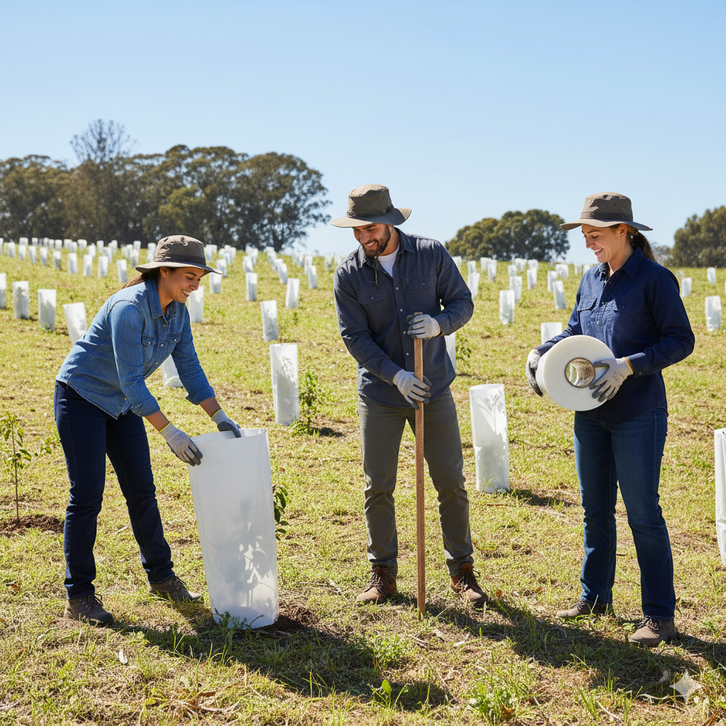 The commercial nut orchard manager, vineyard operator, or large-scale grower requiring a heavy-gauge, UV-protected, and opaque white sleeve solution to secure young almond, olive, and other sun-sensitive high-value whips.