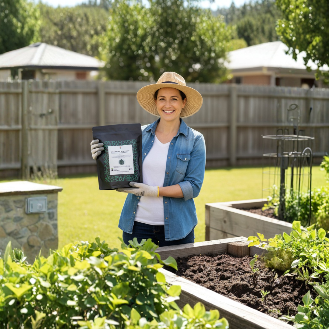 Ready-to-Use Biochar: Fully activated and moisture balanced—no soaking or charging required. Simply mix with soil or potting media.