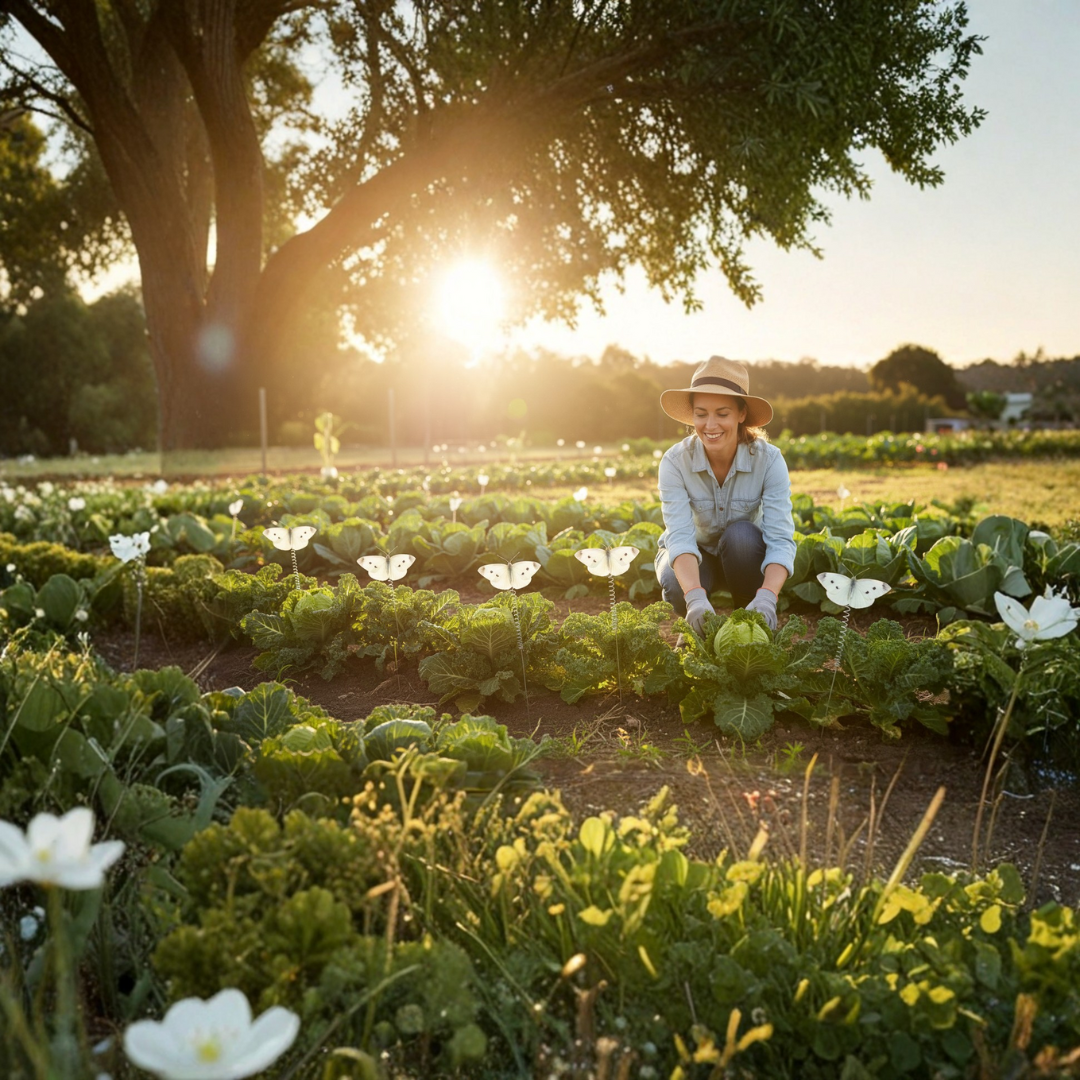 Protect your cabbages and other brassicas from destructive cabbage moths with this simple yet highly effective Cabbage Moth Decoy Set. These lifelike plastic moths imitate the appearance and behaviour of real cabbage white butterflies, which are naturally territorial. When other moths see an occupied area, they are far less likely to land and lay eggs—helping to prevent caterpillar infestations without sprays or chemicals.