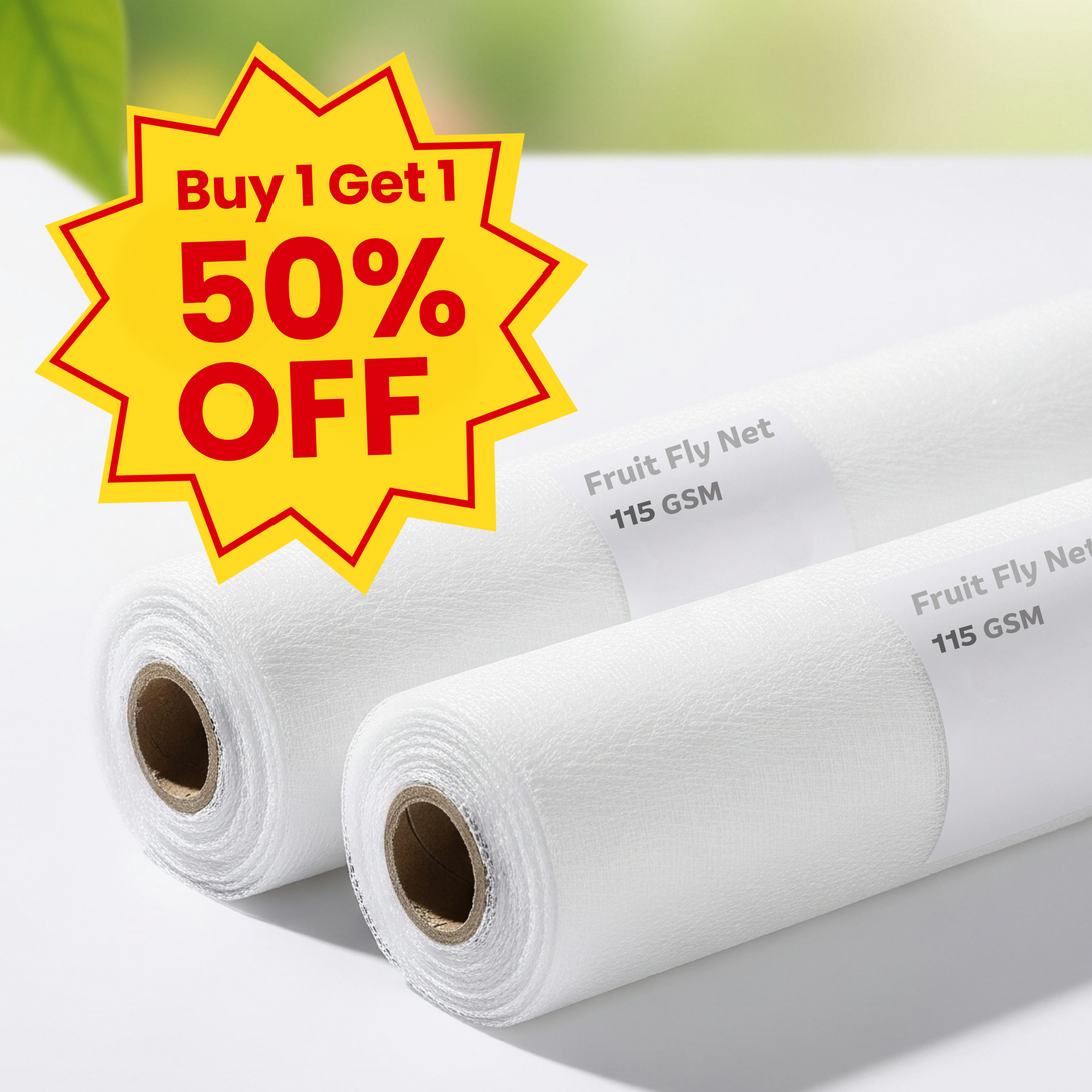 Double your protection and enjoy fantastic value with our limited-time bundle offer! When you buy one roll of our Premium Fruit Fly Netting, you'll get the second roll for 50% off. It's the perfect opportunity to cover more trees, protect larger garden beds, and ensure you have a professional-grade barrier ready for the entire season.