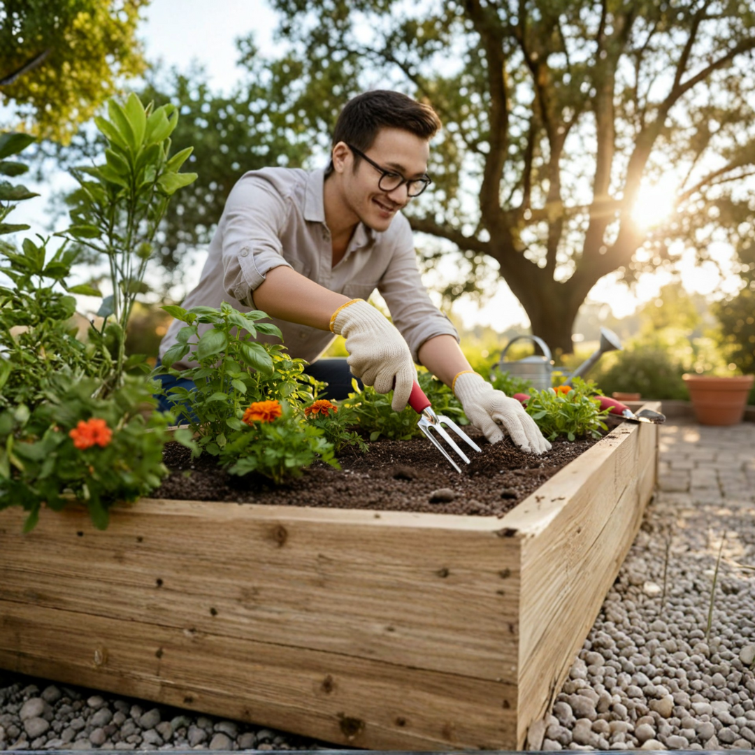 Loosening compacted soil in pots, garden beds, and borders