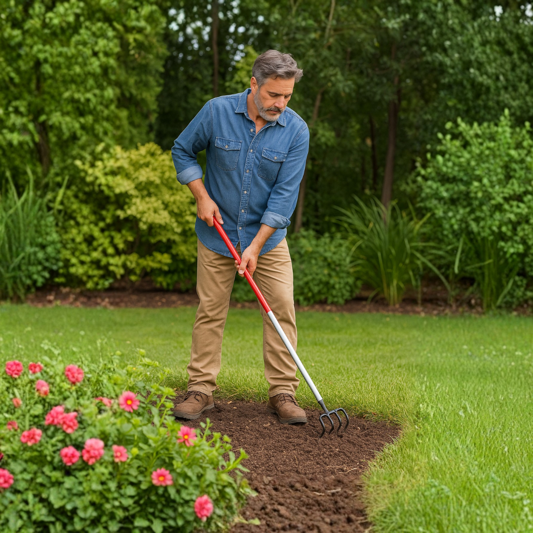 Loosening and aerating soil in established garden beds