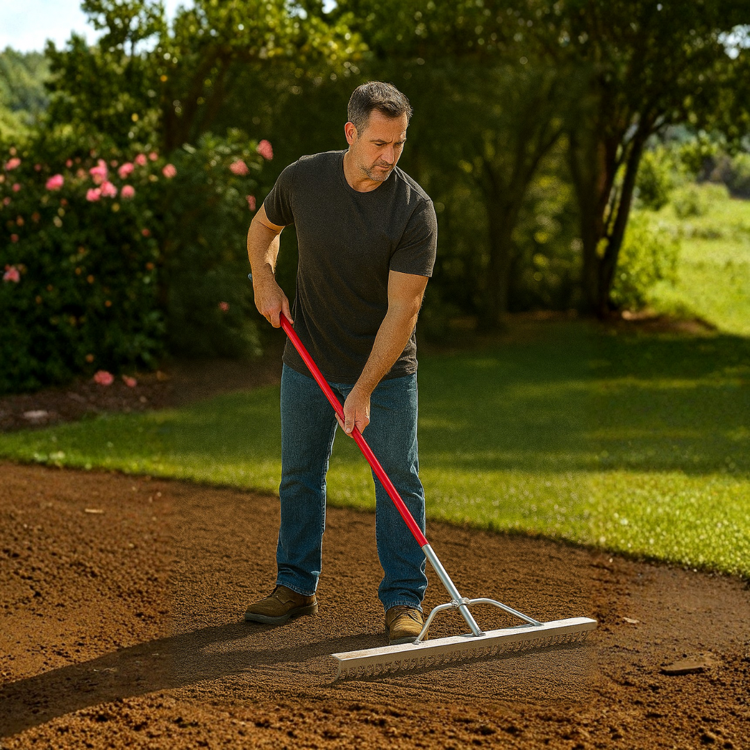 Best For Professional landscapers, turf managers, contractors, and property owners who need a wide, heavy-duty rake for levelling soil, spreading materials, preparing large surfaces, and achieving smooth, even finishes efficiently.