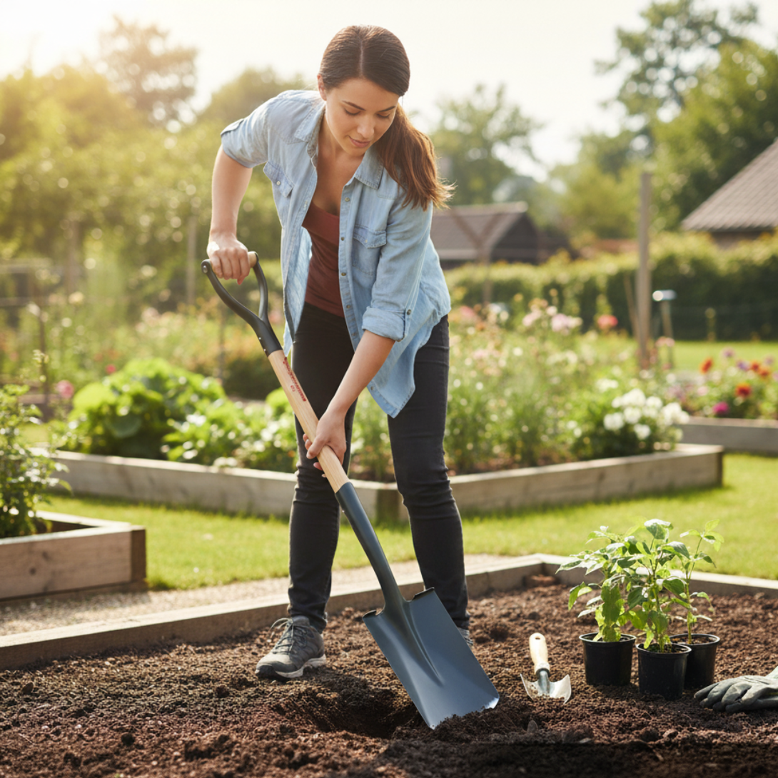 Digging clean, uniform holes and lifting small-to-medium root balls for transplanting.