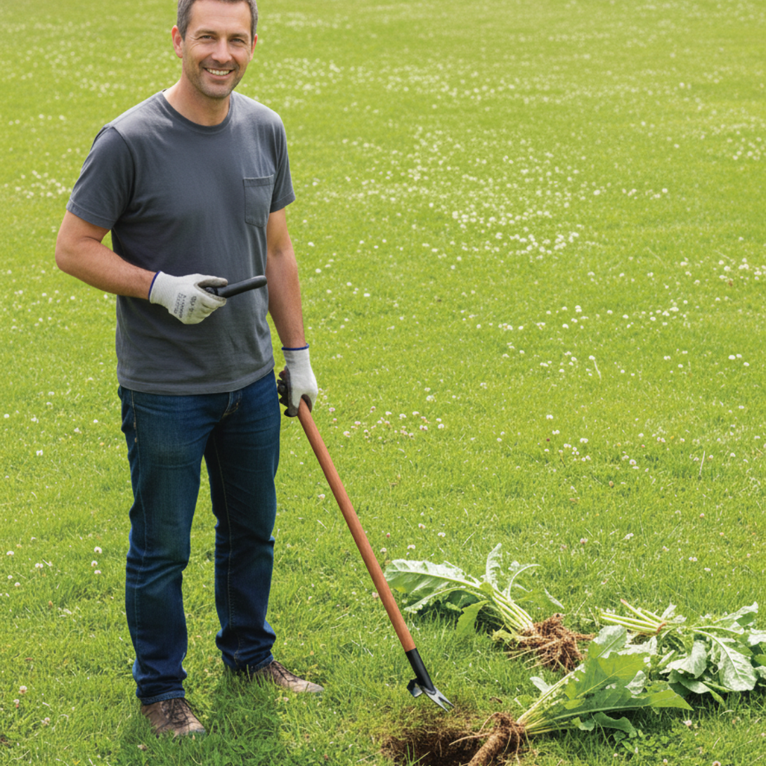 Tackling deep-rooted weeds like dandelions and dock with a hand trowel causes endless strain and incomplete removal, leading to immediate regrowth. The Australian Artisan Daisy Weeder is built to solve this problem for good. Hand-made by local toolmakers using the techniques of a bygone era, this heavy-duty weeder features a forged blade and a specialized pivot point at the end of a 1500mm Spotted Gum hardwood handle. It provides unmatched, comfortable leverage to cut and lock into the taproot beneath the soil, lifting it completely—all without bending over or kneeling.