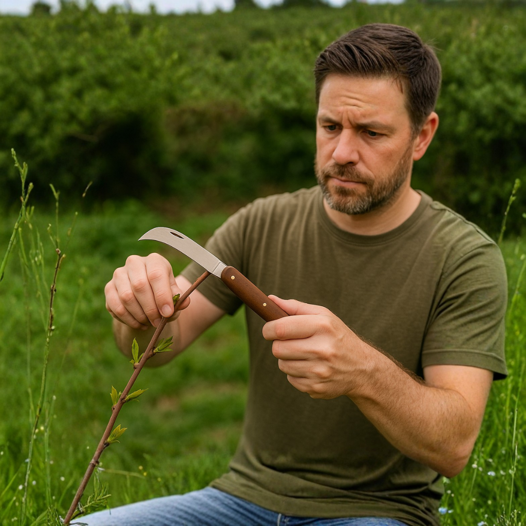 Billhook-Style Blade: Offers excellent leverage and slicing power, ideal for pruning and controlled grafting cuts.