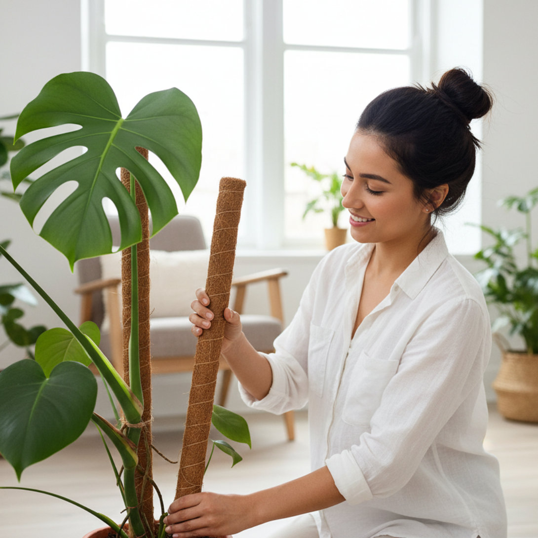 Enhances Leaf Size and Health: By providing a reliable climbing medium, the coir surface allows moisture and nutrients to be retained, signaling the plant to produce larger leaves and more vigorous growth, a key benefit for houseplants.