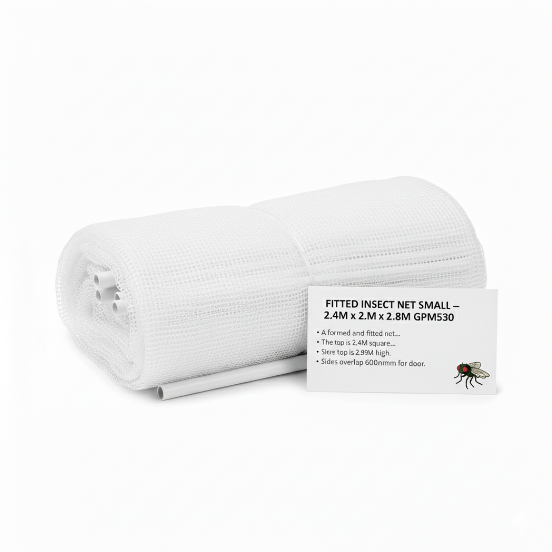 This Large Fitted Insect Net is purpose-built to protect fruit trees and taller garden structures from destructive flying insects and birds. Featuring a 2.4m square top with 2.89m high side walls, the net is fully shaped and sewn around the circumference for a clean, secure fit. A 600mm side overlap creates a practical doorway, making it easy to place the net over a tree and providing convenient access for watering, pruning, or harvesting once fitted.
