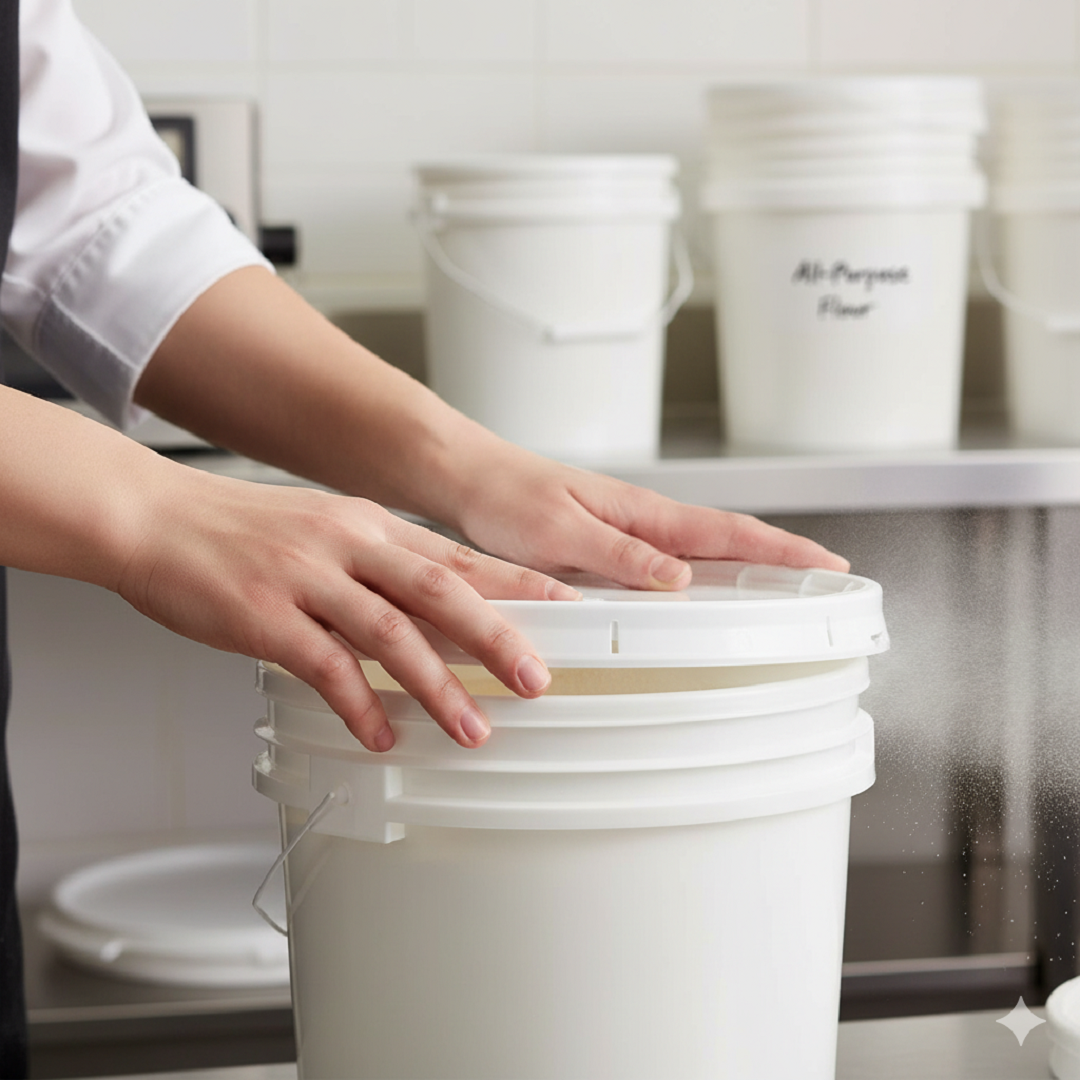 Airtight Seal: Designed to create a **tight, secure closure** on the bucket rim, protecting contents from dust, pests, moisture, and air contamination.