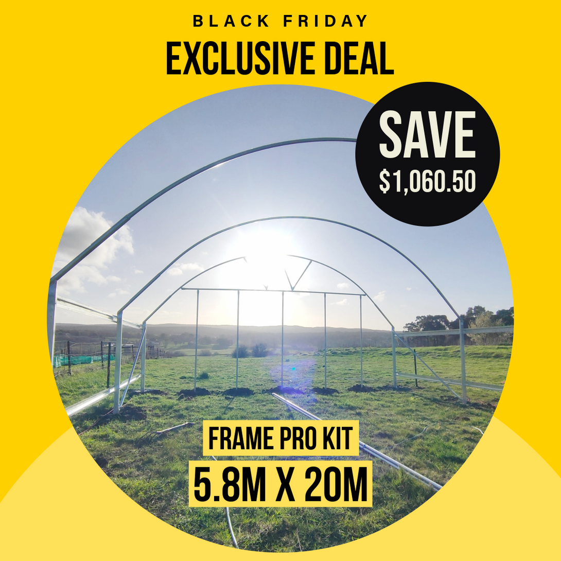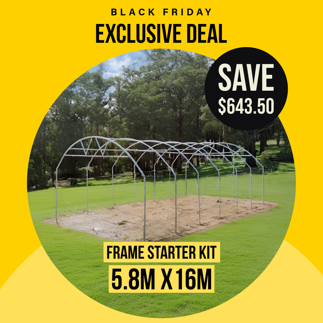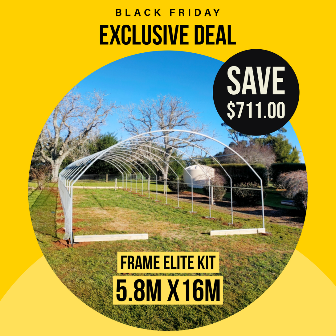 Build the ultimate foundation for your covered growing space this Black Friday with our exclusive Frame Kits! This limited-time offer provides a curated selection of our premium, heavy-duty galvanised steel frames, specifically engineered for Australian durability. Designed for DIY growers and those seeking a robust, long-lasting structure, choose from specific configurations in our Starter, Elite, Pro, and Premium ranges at an unbeatable Black Friday price.