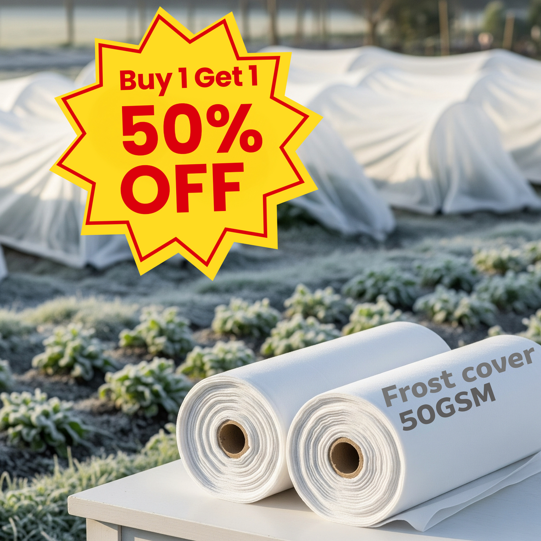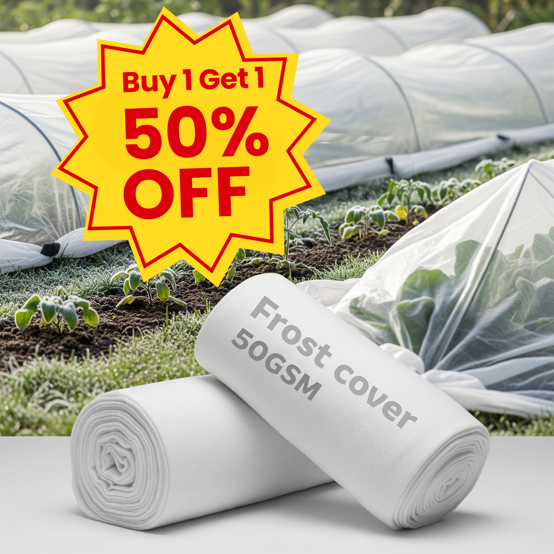 Protect your garden from the chill and save with our special bundle offer! For a limited time, when you buy one roll of our 50gsm Garden Frost Cover, you'll get the second roll for 50% off. Ensure you have enough cover to shield all your precious plants from surprise frosts, harsh sun, and pests. It's the perfect deal to prepare your garden for unpredictable weather.