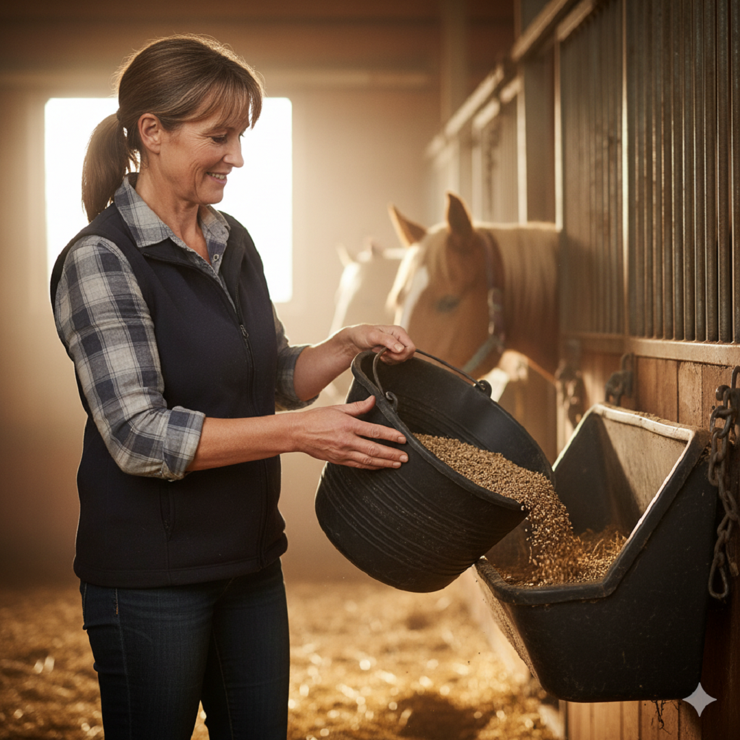 Feeding and watering livestock (horses, chickens, dogs).
