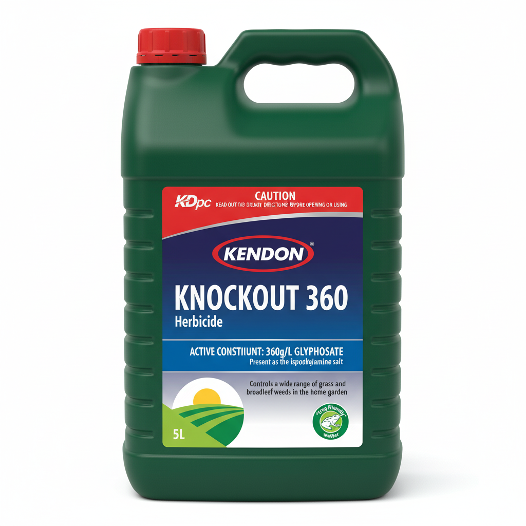 KENDON Knockout 360 is a high-performance, broad-spectrum systemic herbicide formulated with 360 g/L glyphosate for dependable control of a wide range of grass and broadleaf weeds. Enhanced with a premium “frog-friendly” wetter, this formulation delivers superior coverage, faster absorption, and improved effectiveness while supporting responsible environmental stewardship. Proudly made in Australia, Knockout 360 is trusted by home gardeners, land managers, and professionals for powerful, consistent weed control across gardens, paths, fence lines, paddocks, and landscape areas.