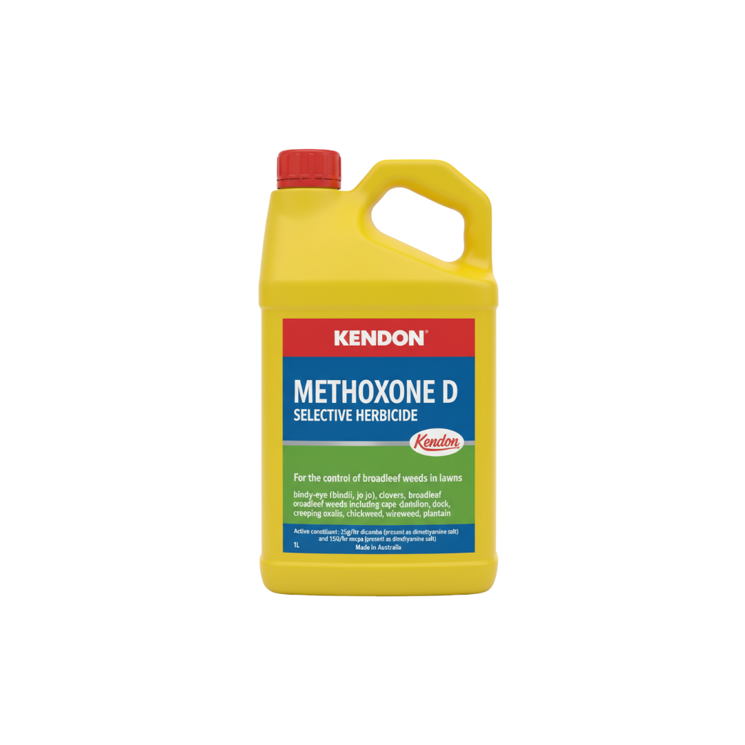 KENDON Methoxone D is a selective liquid herbicide designed to target and control a wide range of broadleaf weeds in established lawns without harming desirable turf. Formulated with a powerful combination of 150 g/L MCPA and 25 g/L Dicamba (both present as dimethylamine salts), this trusted Australian-made product delivers fast and effective knockdown of common lawn weeds, restoring lawn health and improving overall appearance. Ideal for homeowners, landscapers, and turf professionals who want a reliable, easy-to-use solution for maintaining clean, weed-free lawns and sporting surfaces.