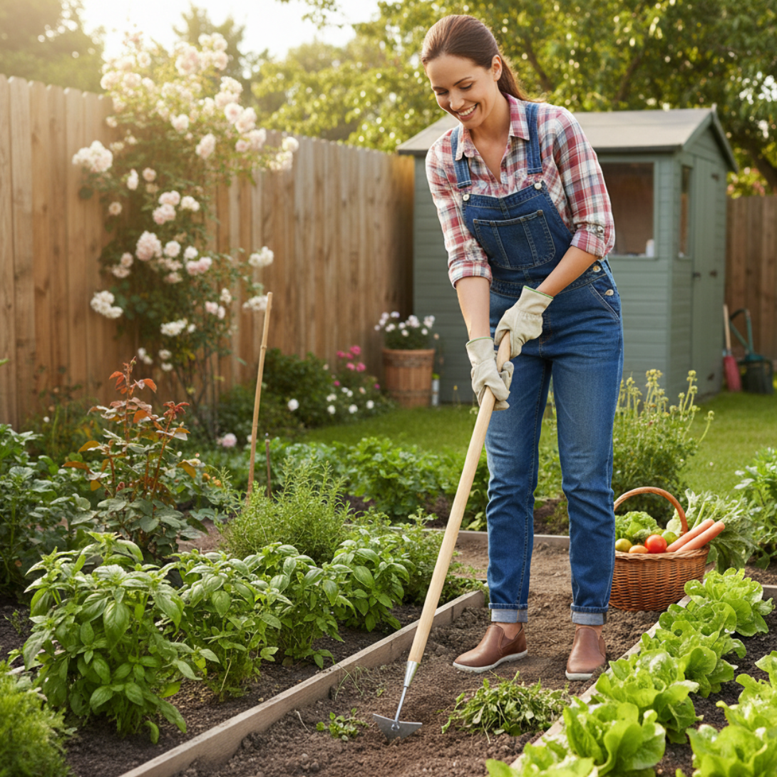 Rapidly clearing large areas of shallow-rooted annual weeds and light grasses from vegetable rows.