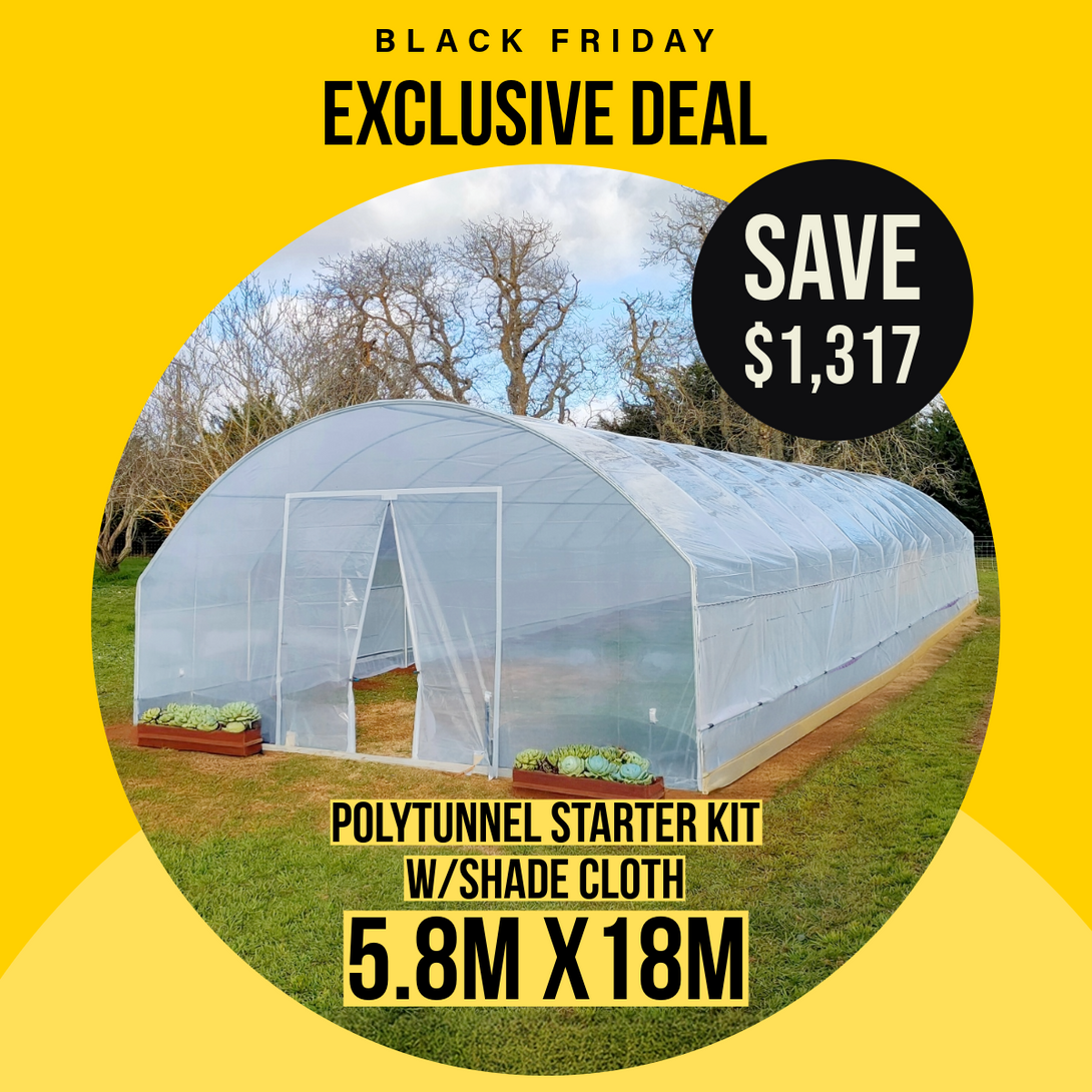 Unlock unparalleled growing potential this Black Friday with our exclusive Greenhouse Polytunnel Kits! Specifically engineered for Australian growers and our unique climate, this limited-time offer brings you a curated selection of our most popular, high-quality polytunnels. Designed for serious growers who demand durability, efficiency, and exceptional value, choose from specific configurations in our Starter, Pro, and Premium ranges to perfectly match your space and ambition at an unbeatable Black Friday price.