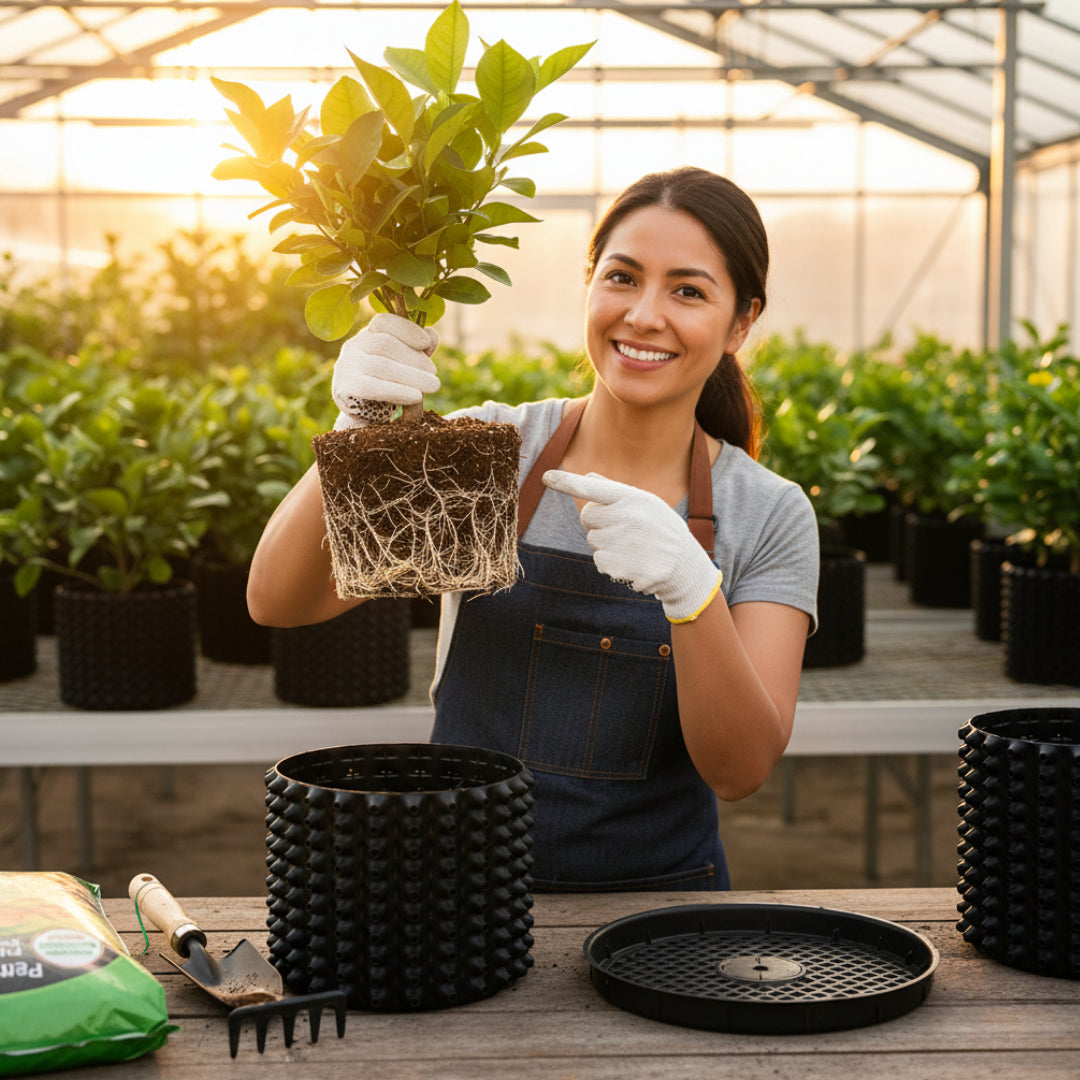 Active Air Pruning Technology: The perforated walls and open base stop root spiraling instantly, creating dense, highly branched, and fibrous root systems for maximized growth.