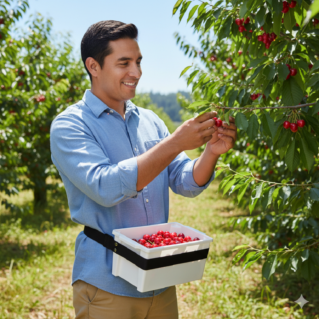 Hands-Free Waist Style: Securely held in place by a **single waist strap with a side clip**, allowing both hands to be free for quick, continuous picking.