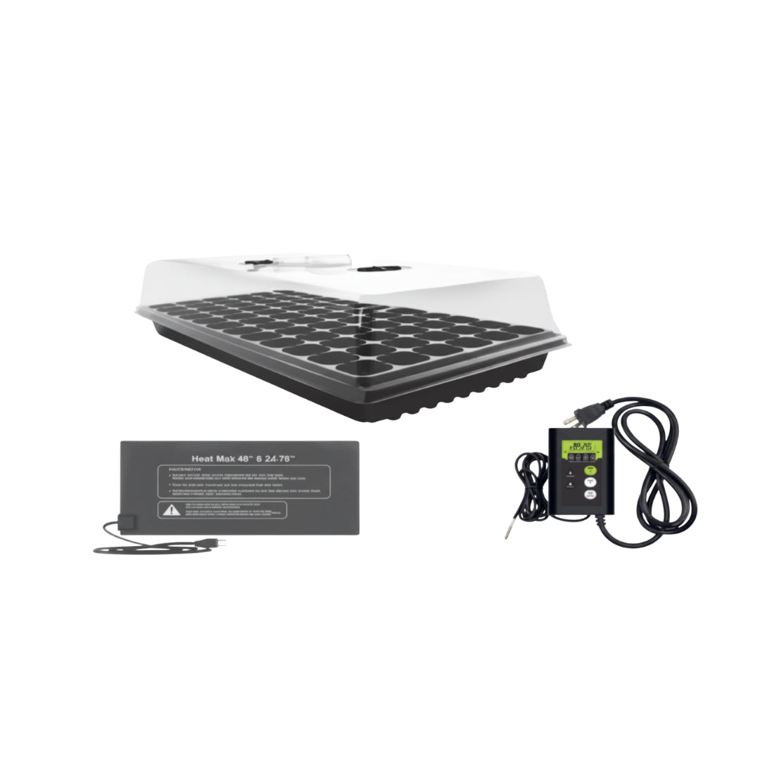 Includes: Dome propagator, 72-cell tray, heat mat, thermostat
