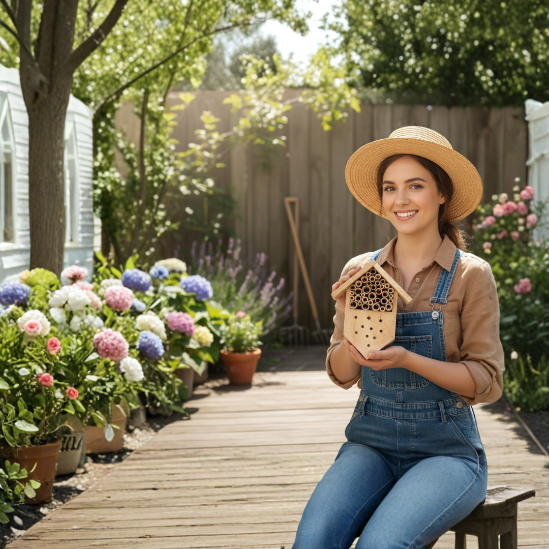 - Habitat Sections: Bamboo tubes for solitary bees; timber-filled shelter for ladybirds and lacewings