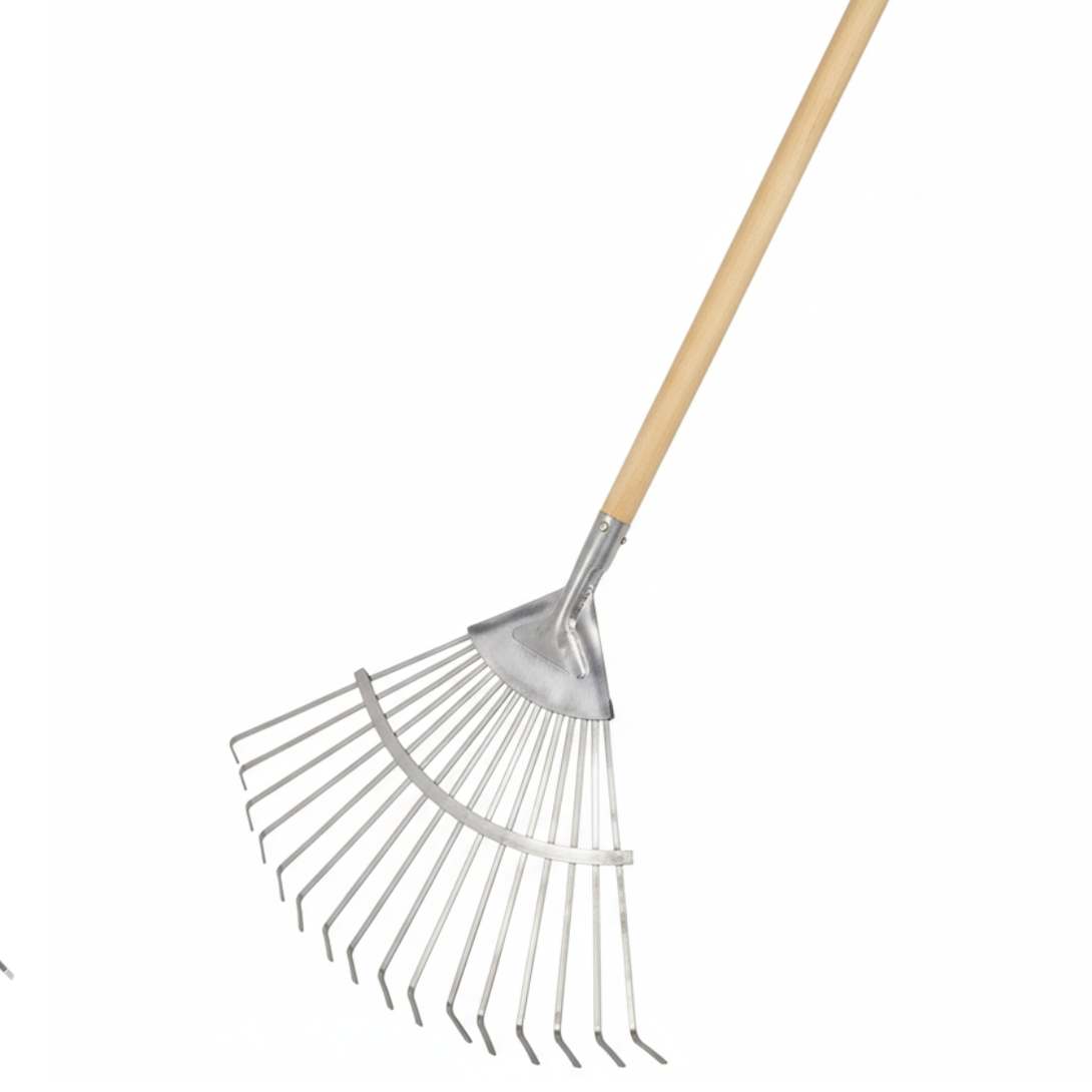 Raking leaves and light garden debris can be back-straining work if your tool is inefficient or too short. The Stainless Steel Leaf Rake is engineered for superior coverage and comfort. Featuring a wide 450mm bow head with 16 rigid, rounded tynes and an extra-long 1300mm FSC Ash Hardwood handle, this premium tool allows you to gather maximum material with every pass while maintaining a comfortable, upright standing position. It's the ultimate tool for autumn cleanup and spring tidying, guaranteed by a robust 5-year warranty.