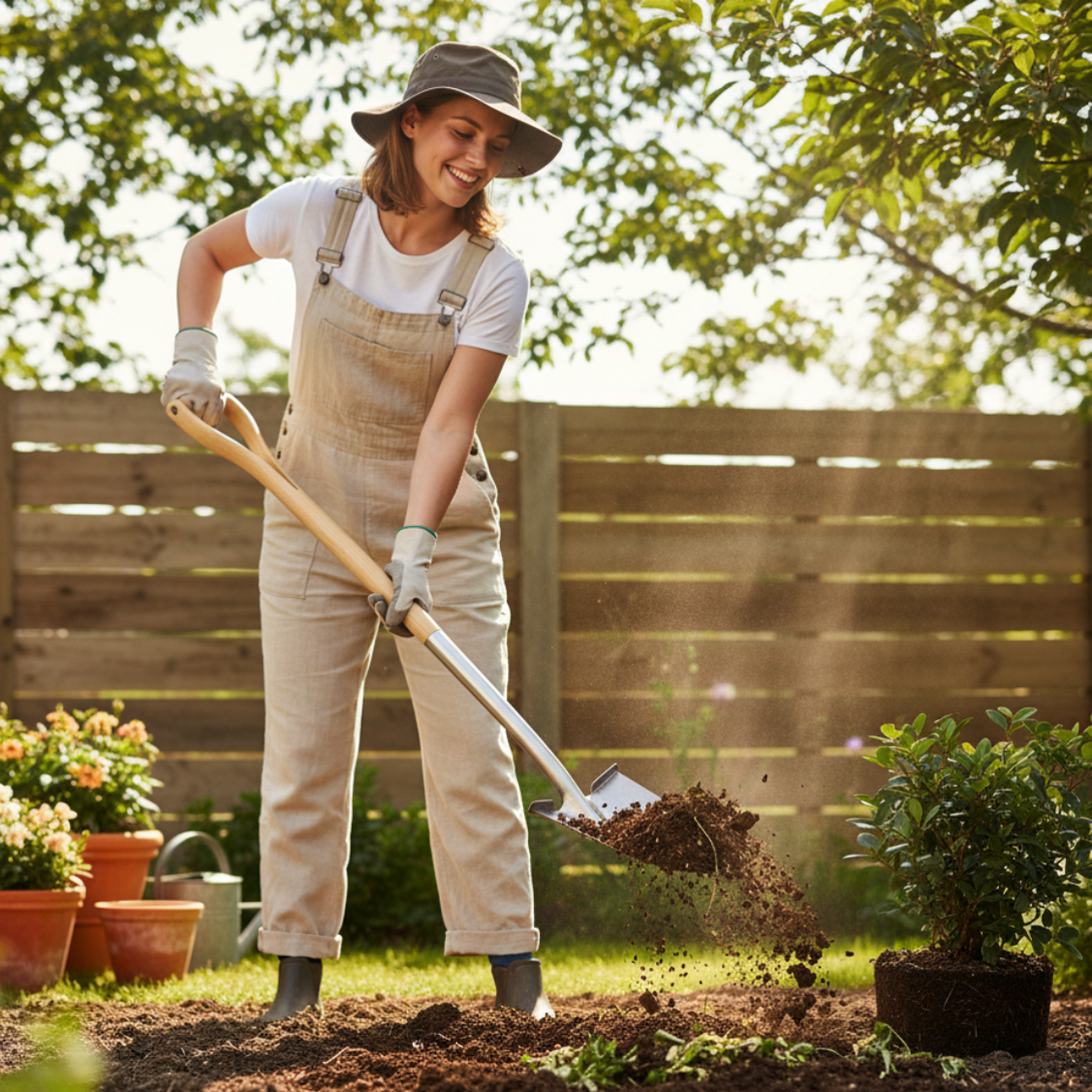 Digging precise planting holes for shrubs, roses, and ornamental standards without disturbing adjacent plants.