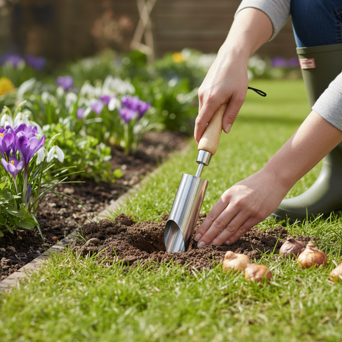 Tired of inaccurate planting depths and damaged bulbs? This Premium Stainless Steel Small Bulb Planter is engineered for precision, ensuring your crocus, snowdrops, and hyacinths are planted perfectly every time. Featuring a specialized 38mm core and a razor-sharp, angled rim, it slices cleanly into the soil, extracting a neat plug with minimal effort. Paired with a beautiful FSC Ashwood handle and backed by a 5-year warranty, this tool guarantees healthy, vibrant floral displays year after year.
