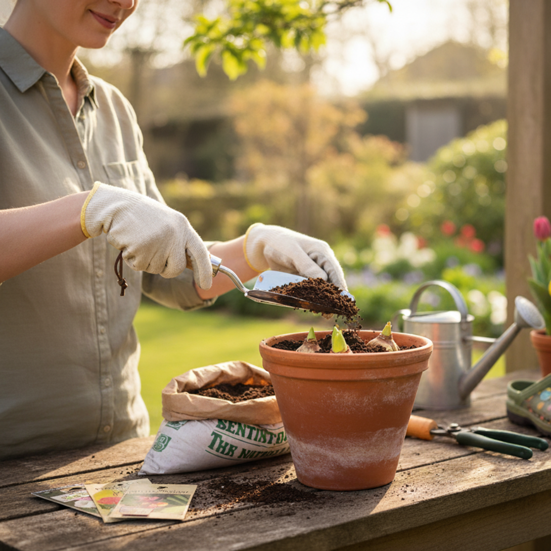 Precisely planting and transplanting seedlings and bulbs into small or crowded containers and window boxes.