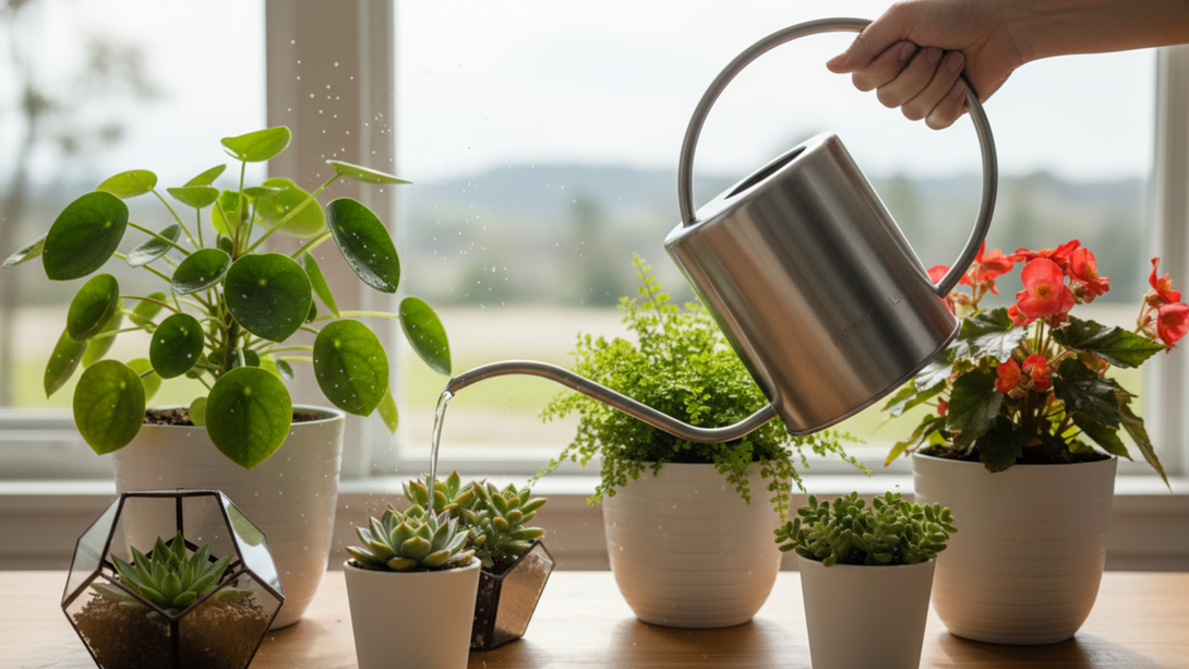 Precisely watering medium-to-large indoor houseplants, succulents, and cacti.