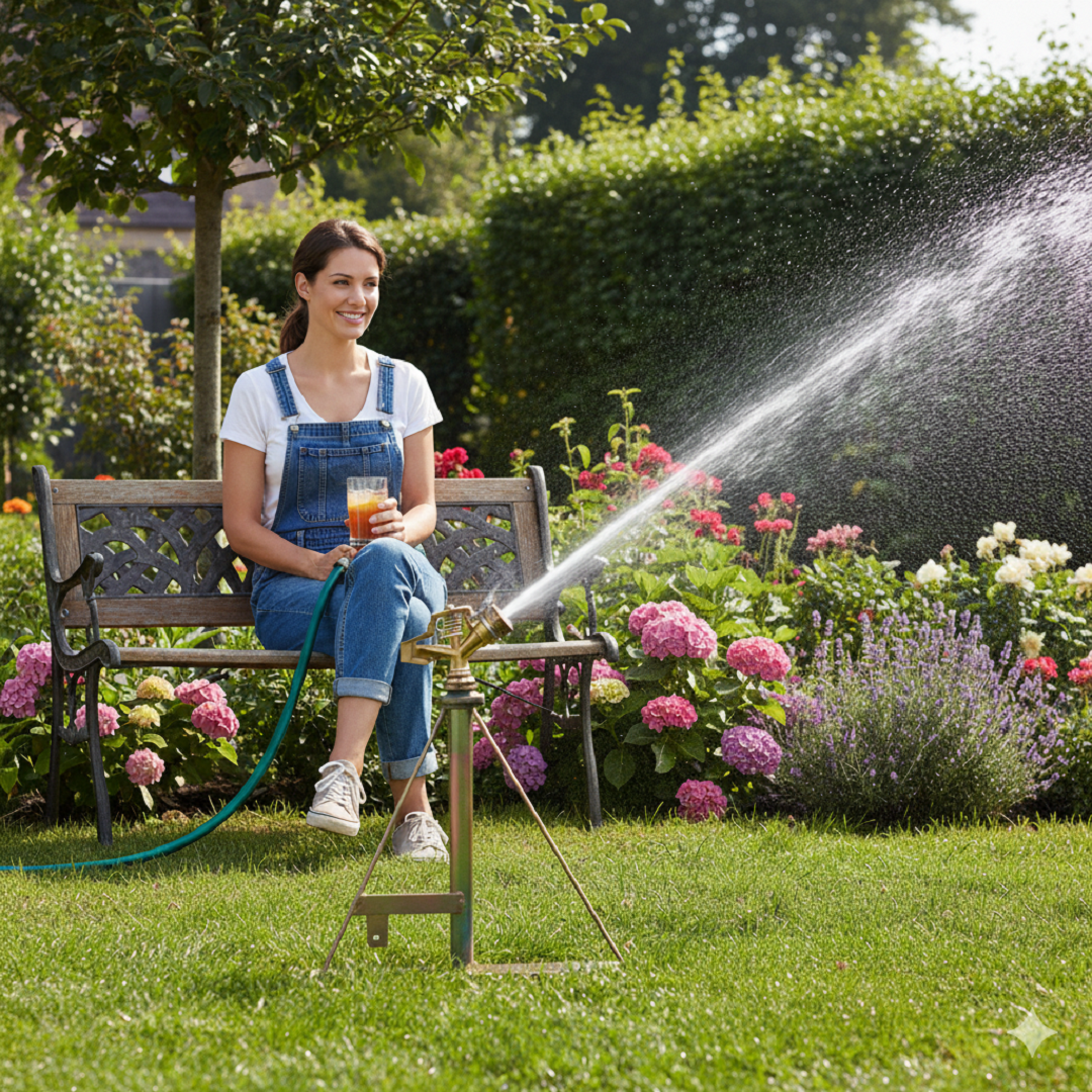 Integrated 19mm Connection: Comes fitted with a **19mm threaded elbow** ready for immediate connection to the sprinkler head and your 19mm hose system.
