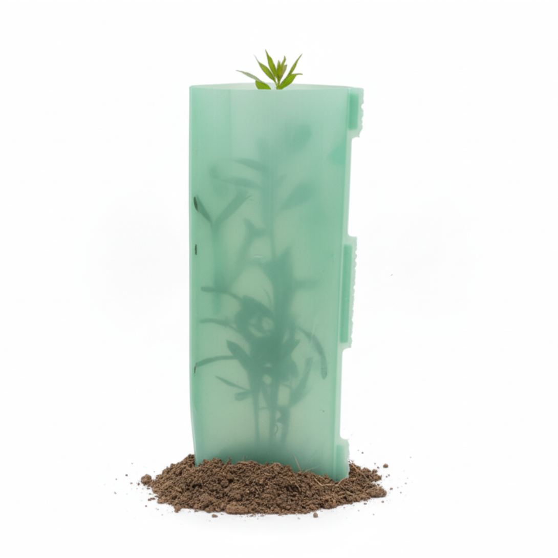 Efficient Single/Double Stake Anchor: The self-supporting fluted plastic structure provides enough rigidity to be securely anchored with just one or two bamboo stakes, drastically reducing material costs and installation time across large plantings.