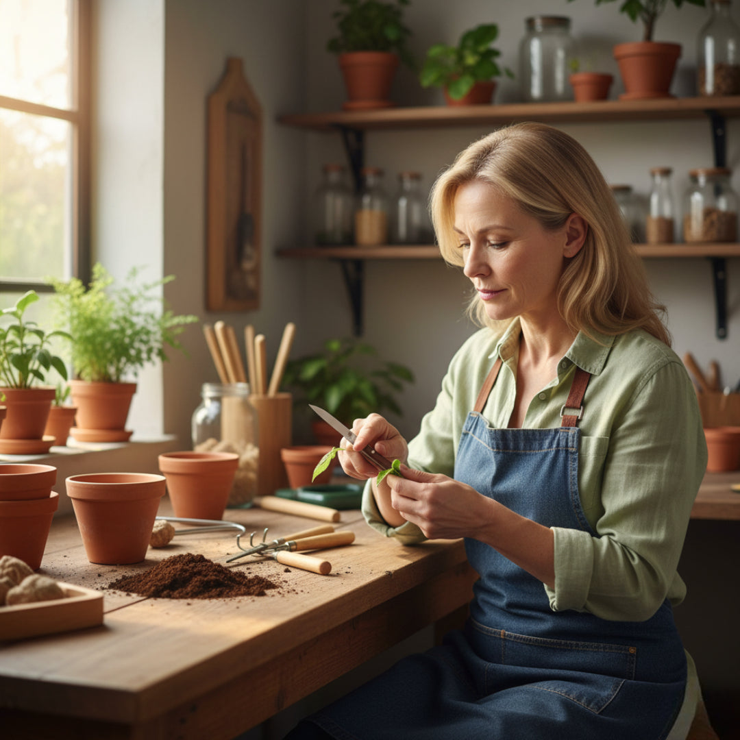 Skilled home gardeners refining grafting techniques