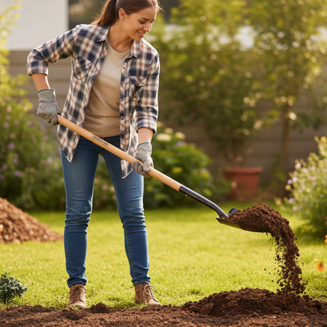 Ergonomic Design: The handle is designed with an ergonomic curve (Assumed: overall form) that maximizes control and minimizes fatigue, ensuring the tool feels balanced and natural as you drive the blade into the earth.