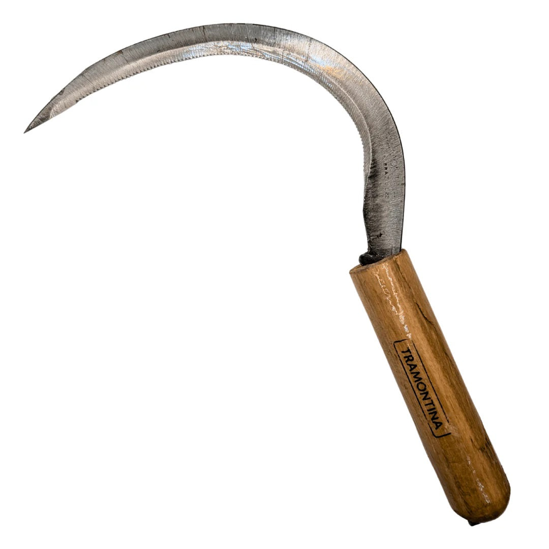 Tramontina Serrated Grass Hook / Sickle - 320mm Blade, 90-Degree Curve, Short Wooden Handle - Traditional Tool for Cutting Grass, Weeds, and Crops