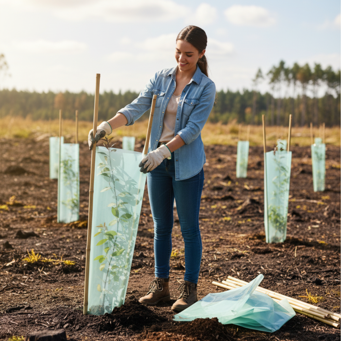 When undertaking large-scale planting projects, efficiency and total cost of ownership are the most critical factors. This Bulk Tree Guard Set is the ultimate solution, providing all the components needed to install 250 complete, professional-grade tree guards in one convenient shipment. Combining the bulk roll of heavy-duty plastic sleeves with 750 robust bamboo stakes, this kit streamlines your supply chain and dramatically reduces installation time, ensuring rapid, reliable protection for your entire planting investment.