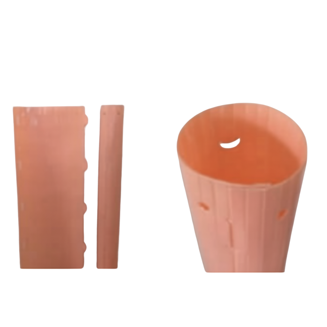 Other specific data: Supplied flat, rolled and tabbed to form tube. Orange/brown colour. Has staking holes.