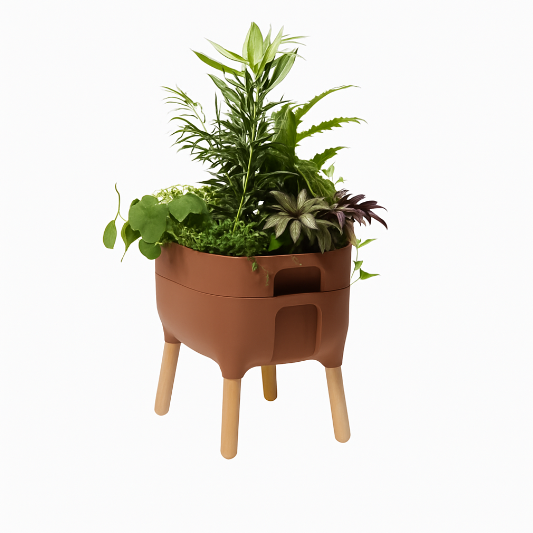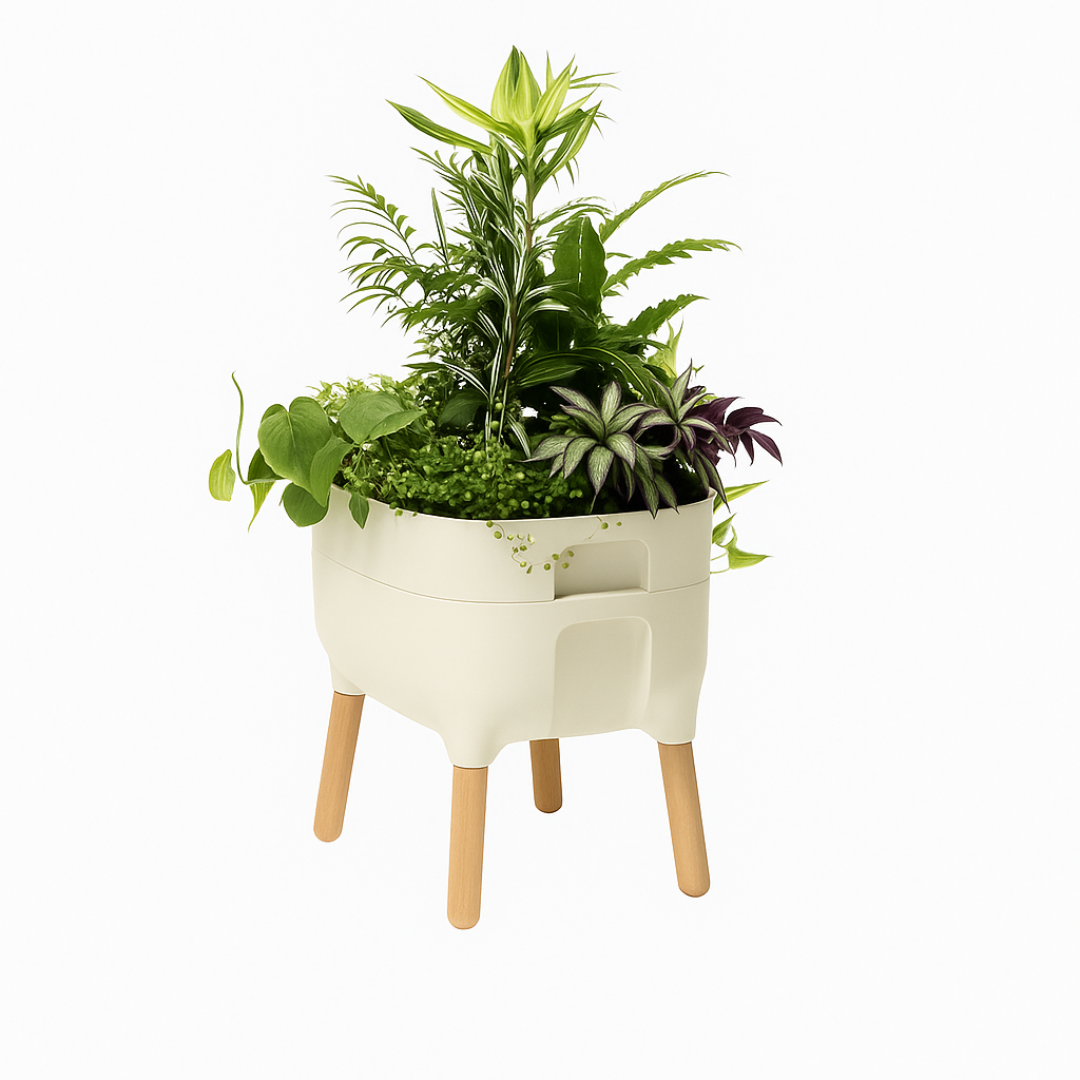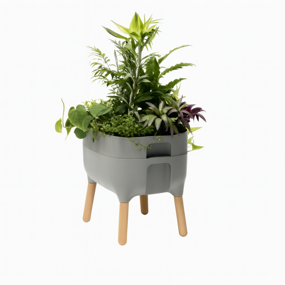 The Urbalive Low Planter is a stylish, modern, and highly functional solution for bringing greenery into your home or covered outdoor spaces. Its contemporary design features a deep planter body set upon elegant wooden legs, elevating your plants to a pleasant viewing height and providing easy access for care. Leveraging Plastia's self-watering expertise, this planter keeps your indoor plants, herbs, and small vegetables healthy and thriving with reduced maintenance.