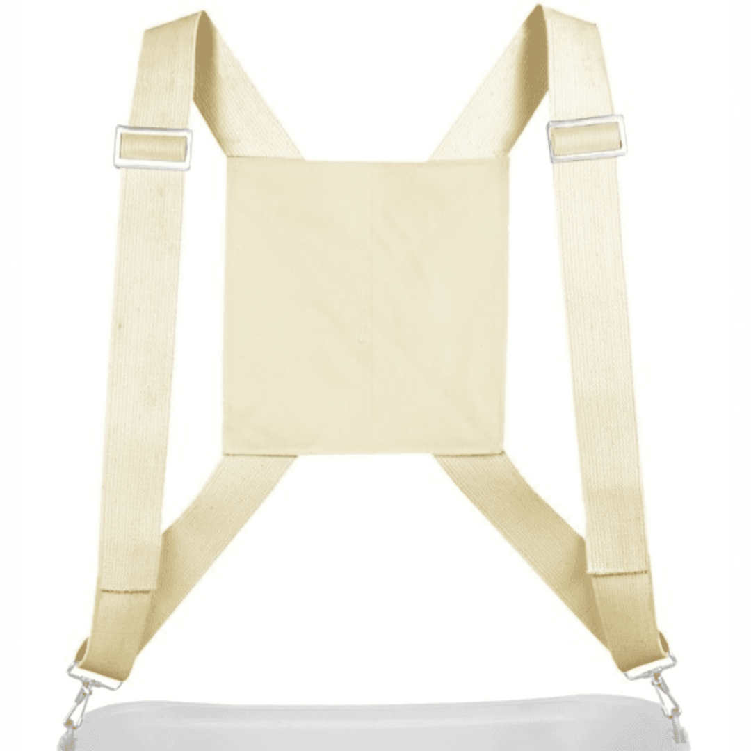 Upgrade your harvesting comfort and durability with the **Wells & Wade Deluxe Lumbar Harness**. This top-tier harness is designed for the most demanding commercial picking operations. Unlike standard versions, the Deluxe model features **heavy duty cotton webbing**, which is known for its strength, durability, and natural comfort against the body, especially during hot, long workdays. The harness is ergonomically shaped to be a **lumbar harness**, effectively distributing the weight of a full cherry bucket to reduce fatigue and strain on the back. It comes complete with **double straps and adjustment** for a secure, customized fit, along with quick-action **clips to instantly release the harness from the bucket**. This premium quality accessory is proudly **Made in the USA**.